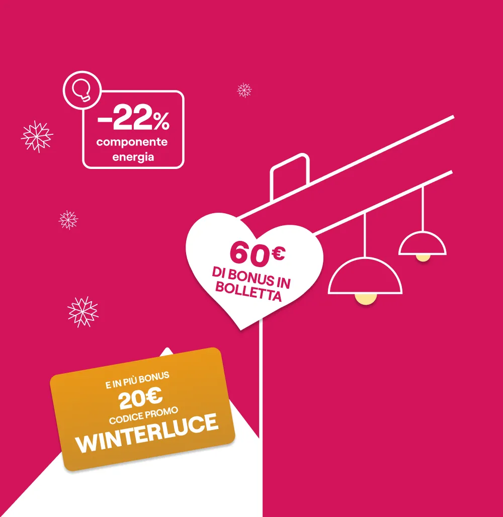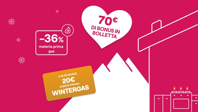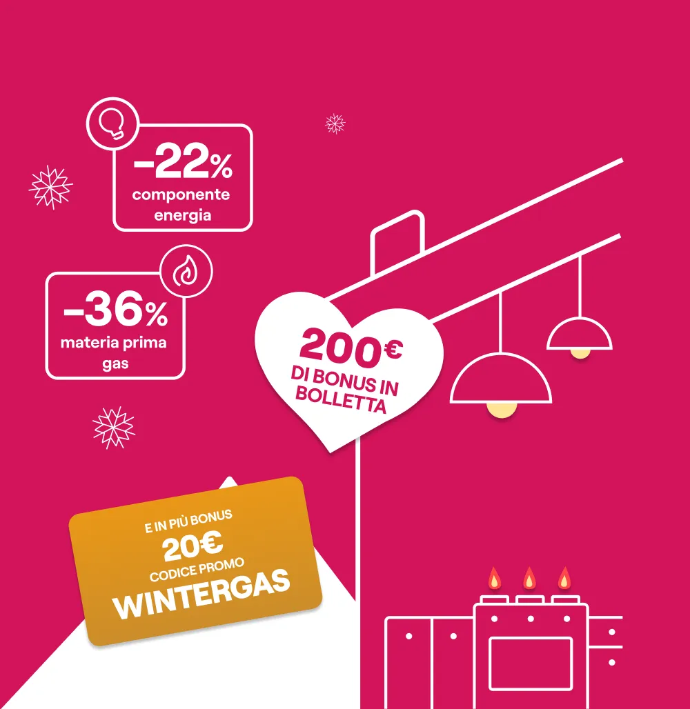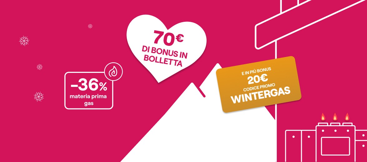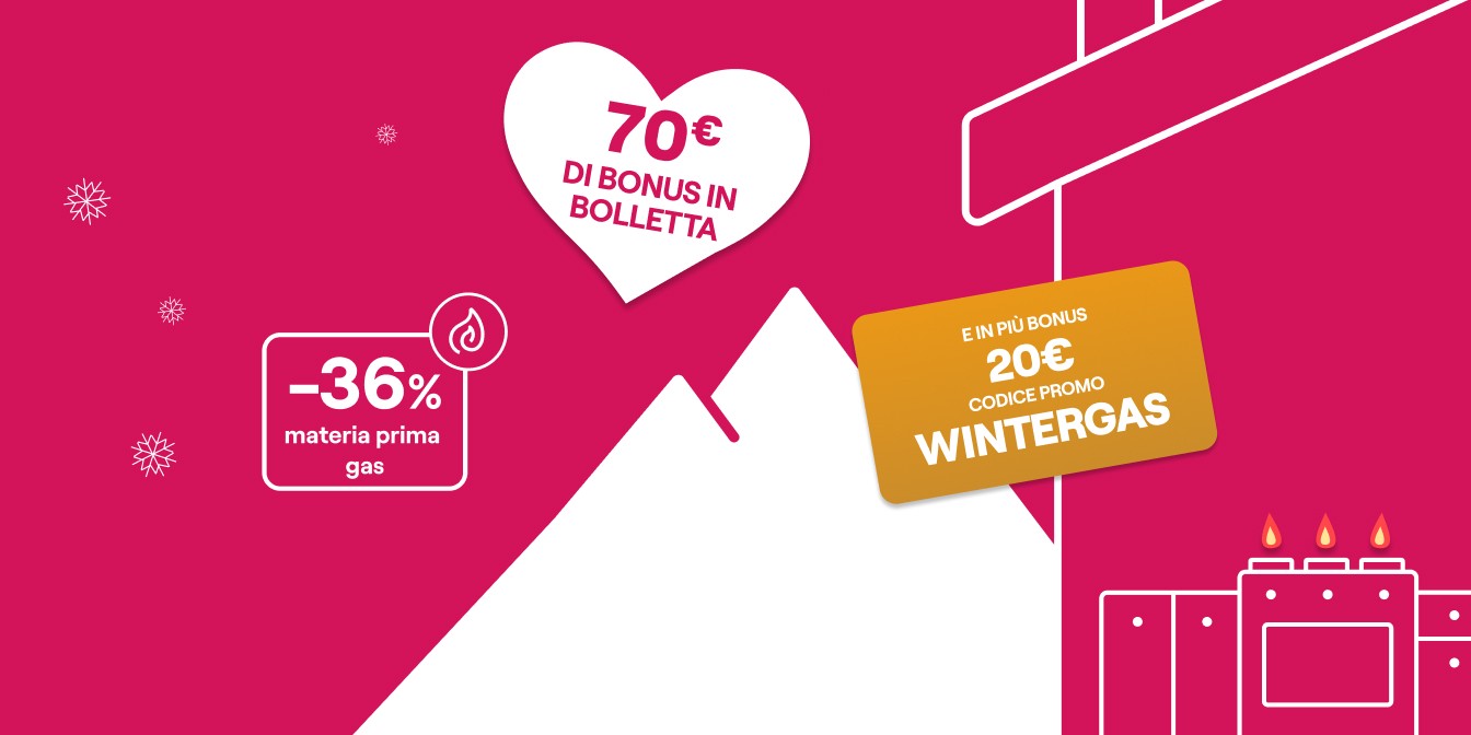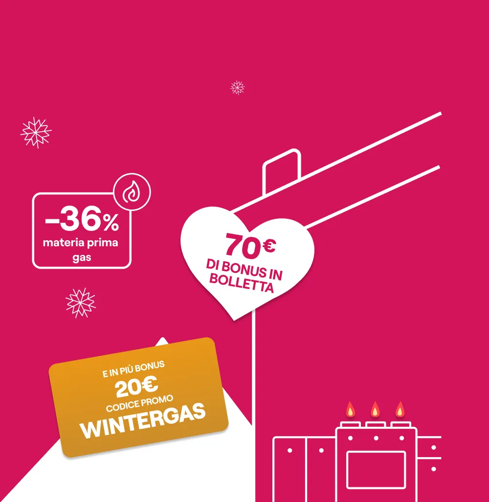 Bonus WINTERGAS: sottoscrivendo la presente offerta inserendo il codice promo WINTERGAS valido dal 12/02/2026 al 04/03/2026, verrà riconosciuto nelle prime 10 bollette mensili un bonus di 2€, a detrazione dell’importo totale fatturato in bolletta.