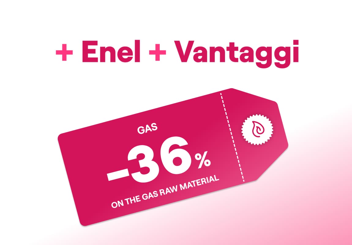*The maximum savings of 36% are calculated based on the raw gas component price (€0.600/Smc), as the sum of (i) - 30% for subscribing to the offer through the web channel (€0.420/Smc) and (ii) - 6% if you are a power customers Enel (€0.382/Smc).