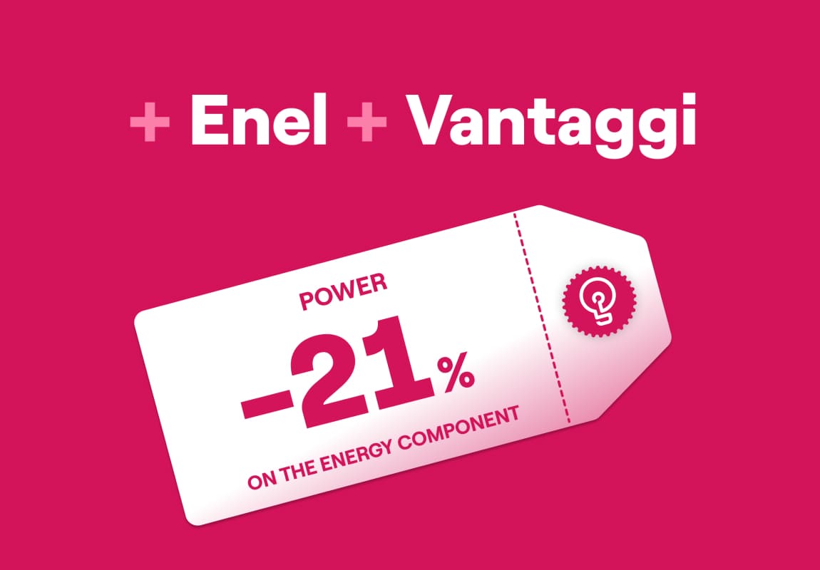 *The maximum savings of 21% are calculated based on the energy component price of the Enel Fix Luce offer (€0.162/kWh), as the sum of (i) -1 8% for subscribing to the offer through the web channel (€0.132/kWh) and (ii) - 3% for customers who are also gas consumer of Enel Energia (€0.127/kWh).