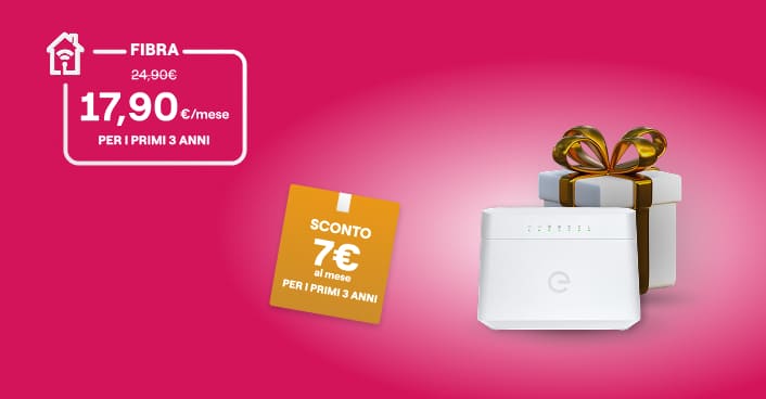 *The offers do not include voice service, resulting in the loss of the landline number in the event of migration. If migration of the requested internet line is not technically possible, a new internet line will be activated and the customer will be required to independently terminate the contract with the previous operator. Offer, using Enel Energia's FTTH technology, reserved for Enel Energia customers for electricity and gas for residential use (excluding PLACET offers and the gradual protection service for non-vulnerable residential customers). For these customers, the base fee of €24.90/month will be discounted to €19.90/month (VAT included) for the first 24 months. Direct debit to your current account or payment card is mandatory for online subscriptions to all fiber offers. A deactivation fee of €19.90 applies for cancellations within the first 24 months. Cancellation of the power and/or gas supply contract results in the loss or rescheduling of the right to the discount(s) effective from the first day of the month following the month of cancellation and will result in changes to the discount validity terms and the initial contractual commitment of the associated offer. The offer is subject to conditions and limitations. Check your coverage to find out which FTTH fiber and mixed FTTC copper network reaches your home. The indicated browsing speed (FTTH) is considered the maximum. To sign up for an offer without a modem included, please see the FAQs.