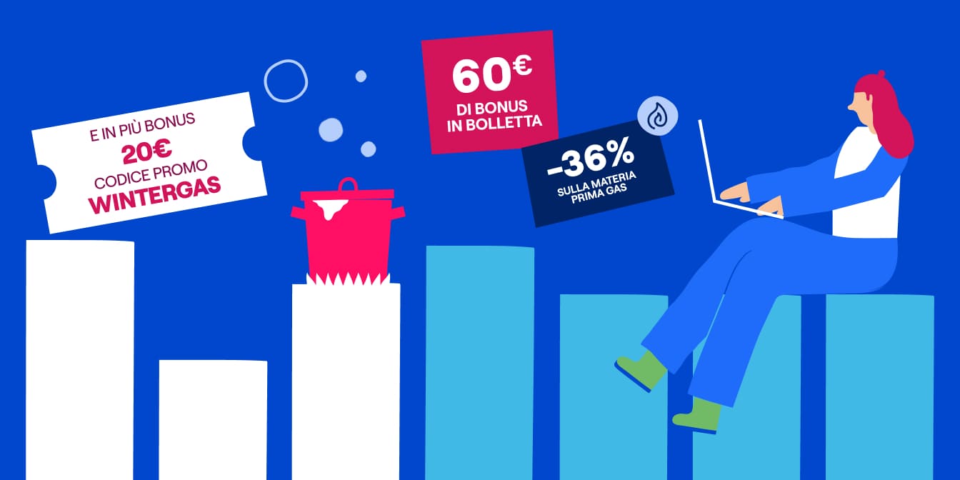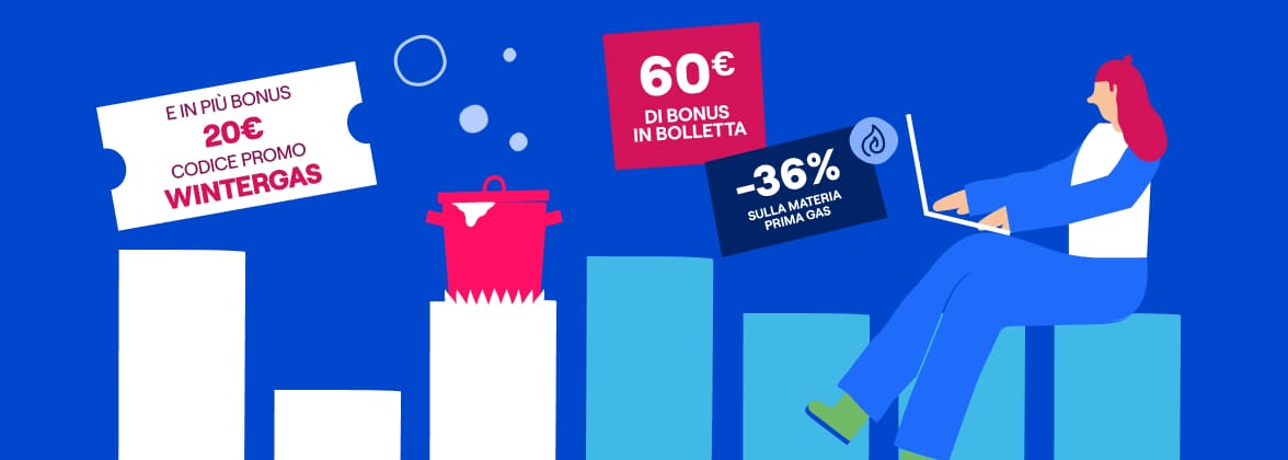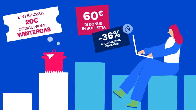 Bonus WINTERGAS: ai clienti che sottoscrivono la presente offerta inserendo il codice promo WINTERGAS valido dal 06/02/2026 al 04/03/2026, verrà riconosciuto nelle prime 10 bollette gas mensili un bonus di 2€, a detrazione dell’importo totale fatturato in bolletta.