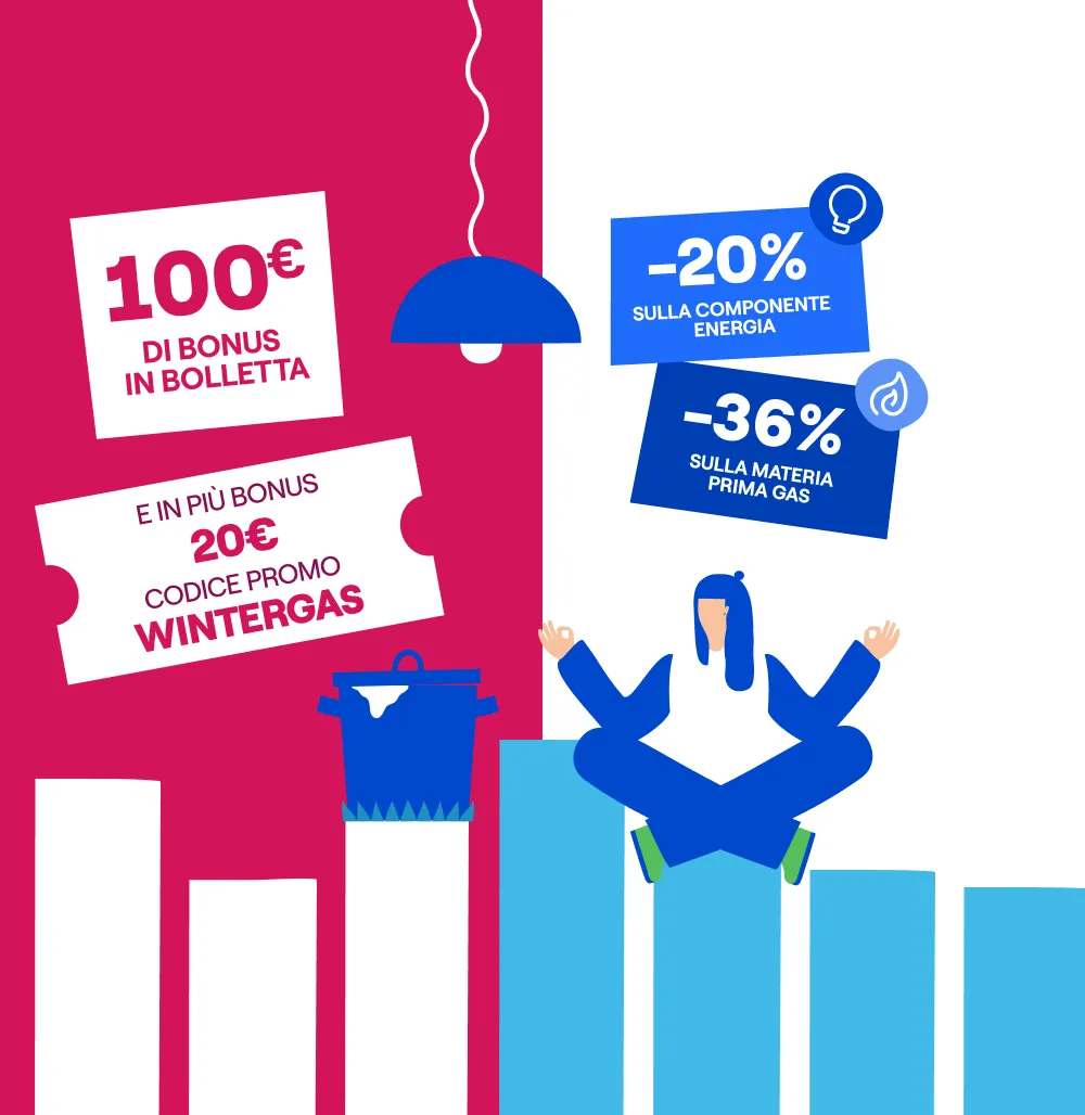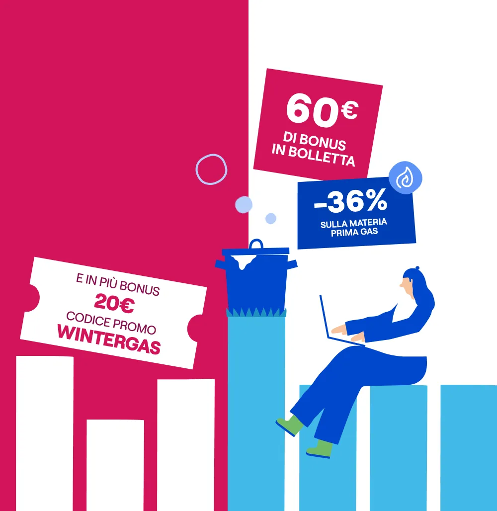 Bonus WINTERGAS: ai clienti che sottoscrivono la presente offerta inserendo il codice promo WINTERGAS valido dal 06/02/2026 al 04/03/2026, verrà riconosciuto nelle prime 10 bollette gas mensili un bonus di 2€, a detrazione dell’importo totale fatturato in bolletta.