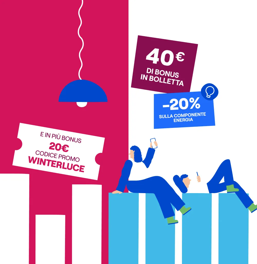 Il bonus di 100€ (40€ nelle bollette luce e 60€ nelle bollette gas) è erogato in quattro tranches direttamente nella prima, settima, tredicesima e diciannovesima bolletta. Condizioni economiche valide fino al 04/03/2026, salvo proroghe. Altre componenti di spesa come da CTE.