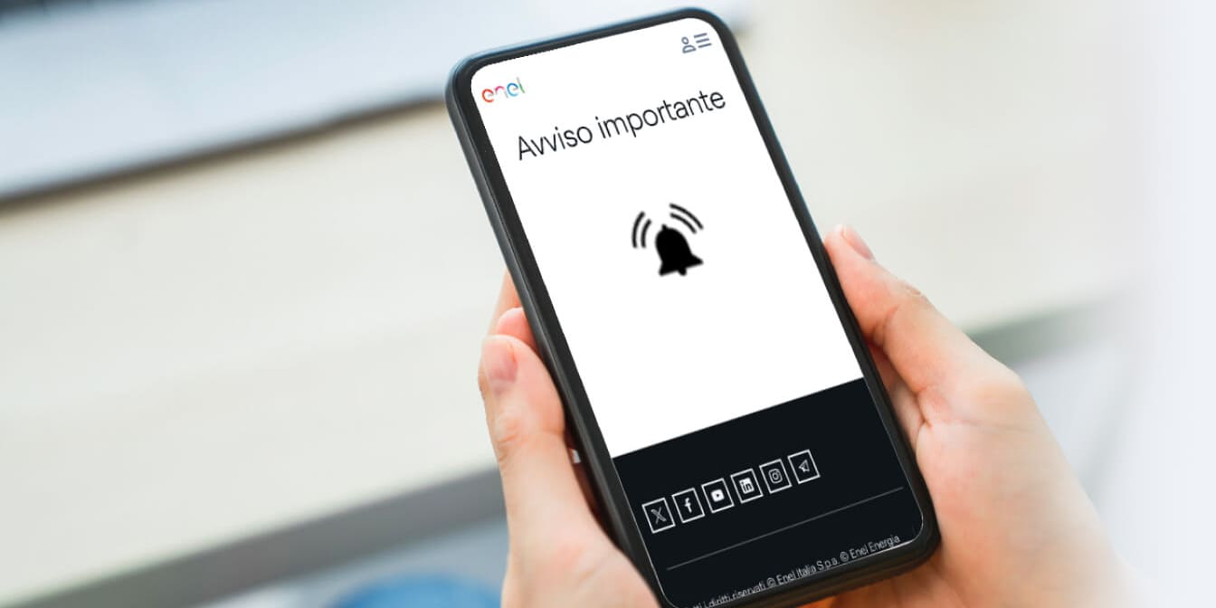 Falsi operatori Enel comunicano una riduzione di potenza a causa del mancato pagamento di una o più bollette, chiedendo un pagamento immediato su IBAN o QR code non Enel per il ripristino della potenza. Stiamo adottando tutte le misure necessarie al fine di evitare che ciò si possa ripetere. Invitiamo a non effettuare alcun pagamento su IBAN o QR code forniti via mail/messaggio/telefono.
