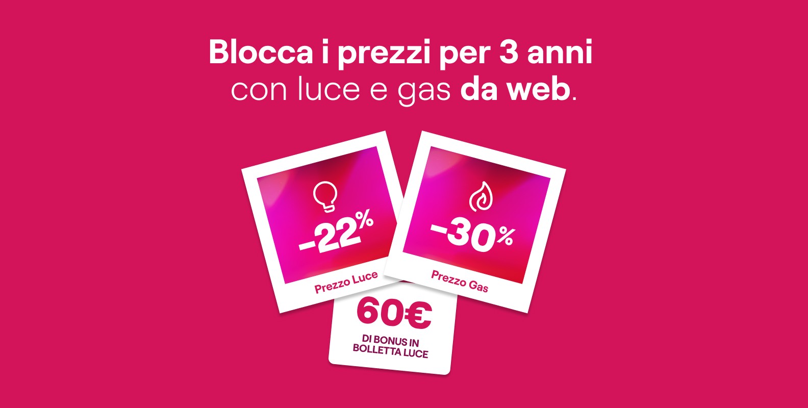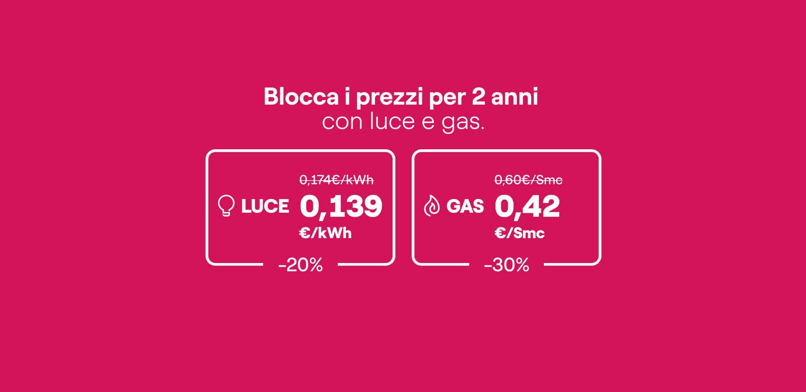 *Il risparmio massimo del 22% è calcolato, partendo dal prezzo della componente energia dell'offerta Enel Fix Luce (pari a 0,174€/kWh), come sommatoria di (i) - 20% in caso di sottoscrizione dell'offerta per il canale web (pari a 0,138€/kWh) e (ii) - 2% se si è anche clienti gas Enel Energia (pari a 0,135€/kWh). Il risparmio del 30% è calcolato partendo dal prezzo della componente materia prima gas (pari a 0,600 €/Smc) in caso di sottoscrizione dell'offerta per il canale web (pari a 0,420 €/Smc).
