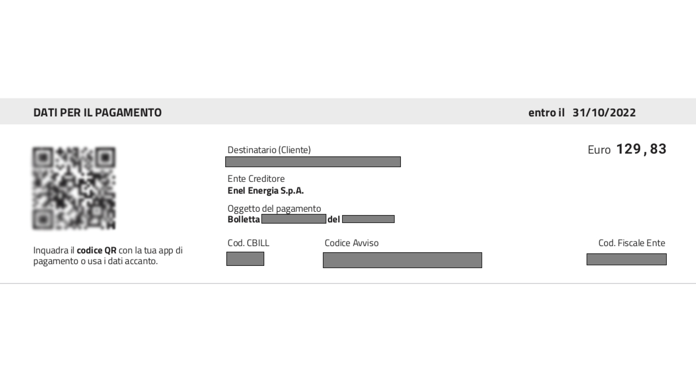 L’avviso pagoPA contiene tutte le informazioni che ti servono, in un formato standard e di facile comprensione. Inquadra il codice QR se utilizzi un App di pagamento, in alternativa, utilizza i dati riportati sull’avviso per tutti gli altri canali di pagamento che lo richiedono.