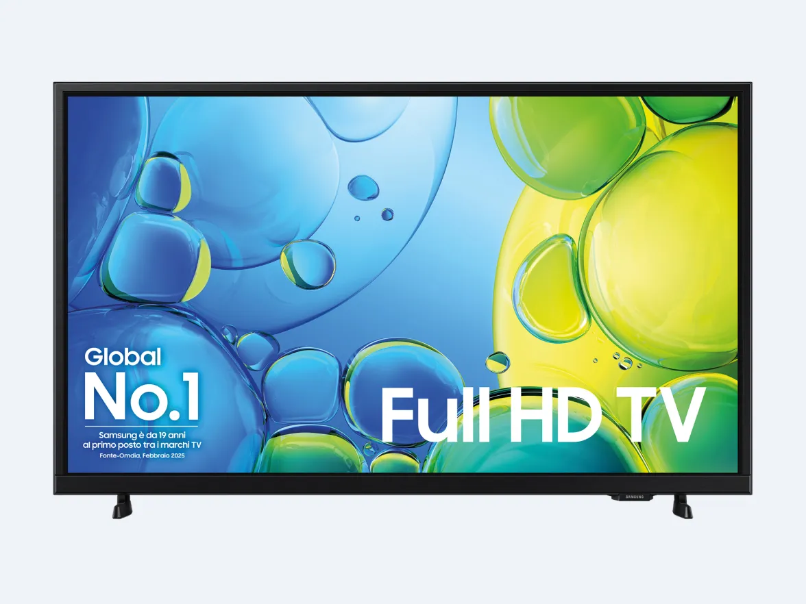 Con la risoluzione Full HD e la tecnologia PurColor di Samsung, i tuoi contenuti avranno colori più realistici e dettagli definiti per un’esperienza visiva coinvolgente. L’audio è immersivo grazie a Object Tracking Sound Lite, che fa seguire il suono all’azione sullo schermo, mentre Adaptive Sound ottimizza automaticamente dialoghi e scene per offrirti sempre la resa migliore. Con il sistema operativo Tizen hai accesso alle principali piattaforme di streaming come Netflix, Disney+ e Prime Video e al Gaming Hub, che trasforma il TV in una console di gioco collegando semplicemente un controller. Il design sottile con cornici ridotte valorizza le immagini e i piedini laterali donano stabilità e un tocco elegante che si adatta perfettamente a ogni ambiente.