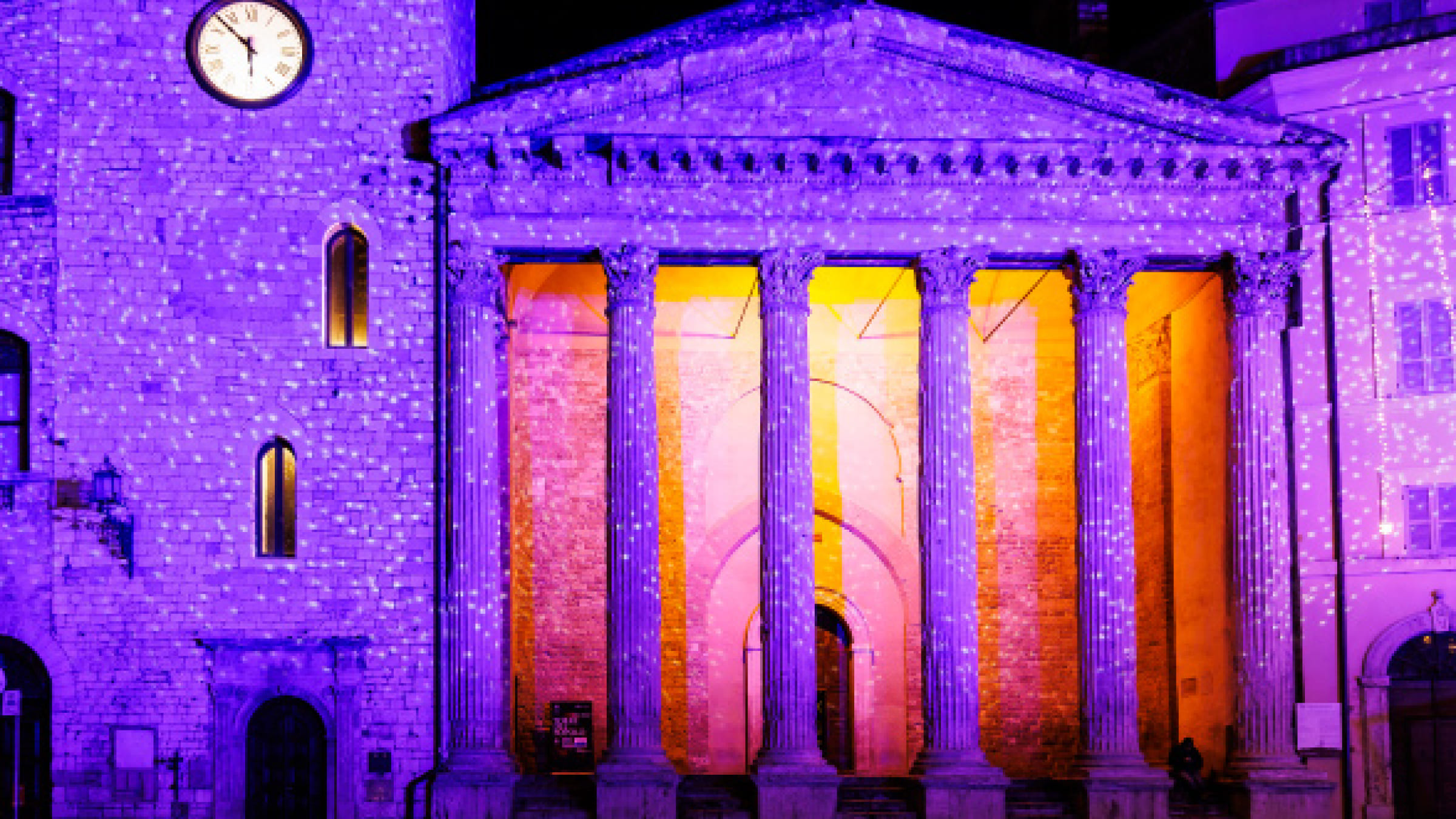 Allo stesso modo, il Teatro Sociale di Piazza Verdi, un gioiello architettonico e culturale, viene avvolto in una sinfonia di luci che celebra la musica. Note musicali danzanti sulla facciata del Teatro creano un’esperienza visiva coinvolgente, simboleggiando l'armonia e la bellezza dell'arte.