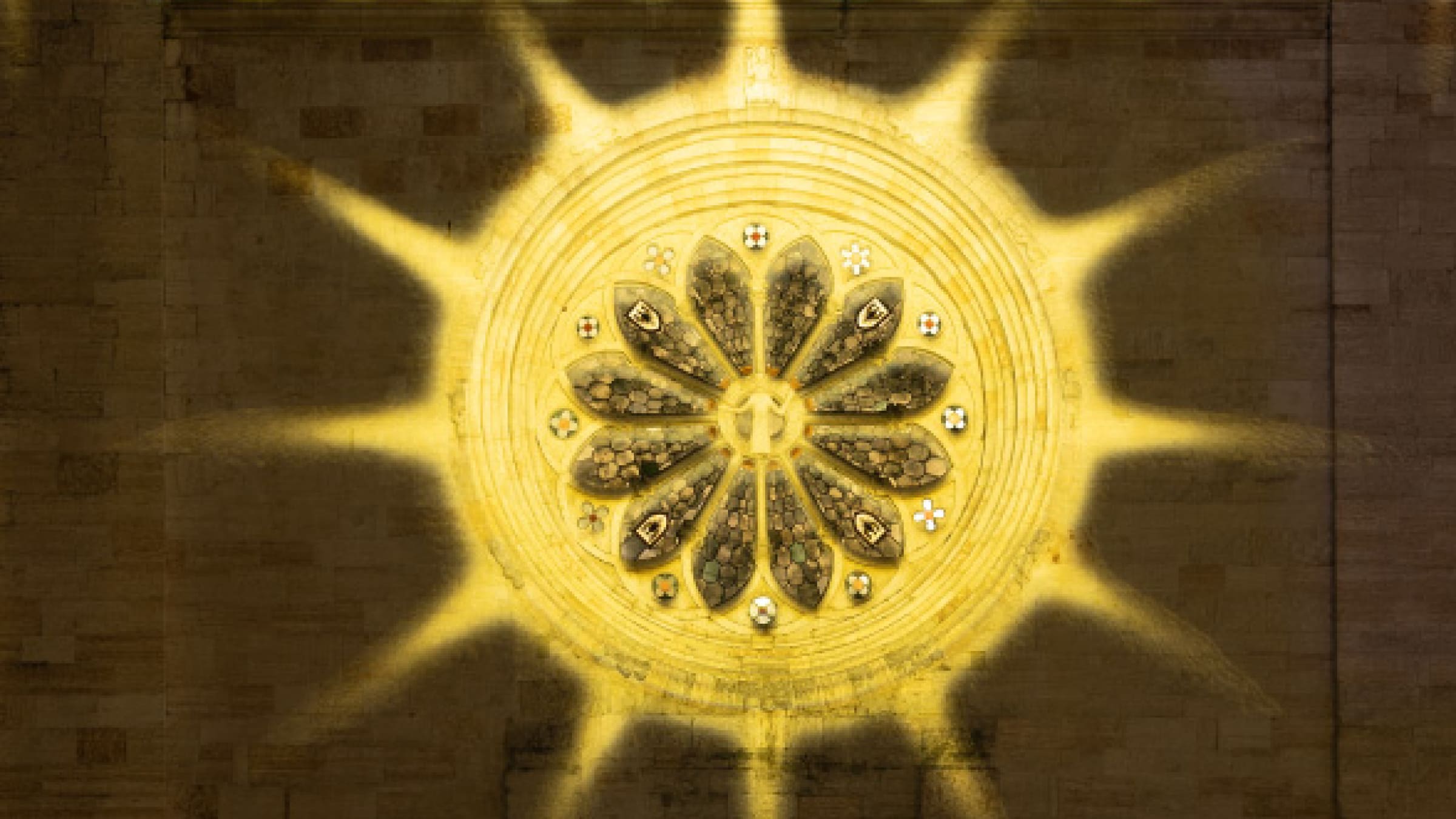 La luce avvolge delicatamente il Duomo e il Palazzo Pretorio, enfatizzando la ritmica dei loro volumi e preservandone l'essenza. Particolare attenzione è stata data alla ruota della fortuna e all'orologio della torre, elementi simbolici di grande rilevanza per la città. Sul Palazzo Pretorio, un'antica porta di ingresso è stata riprodotta e proiettata, circondata dai simboli dell'aquila, della giustizia e della verità, rivelando così la stratificazione architettonica che ha segnato la sua storia.
