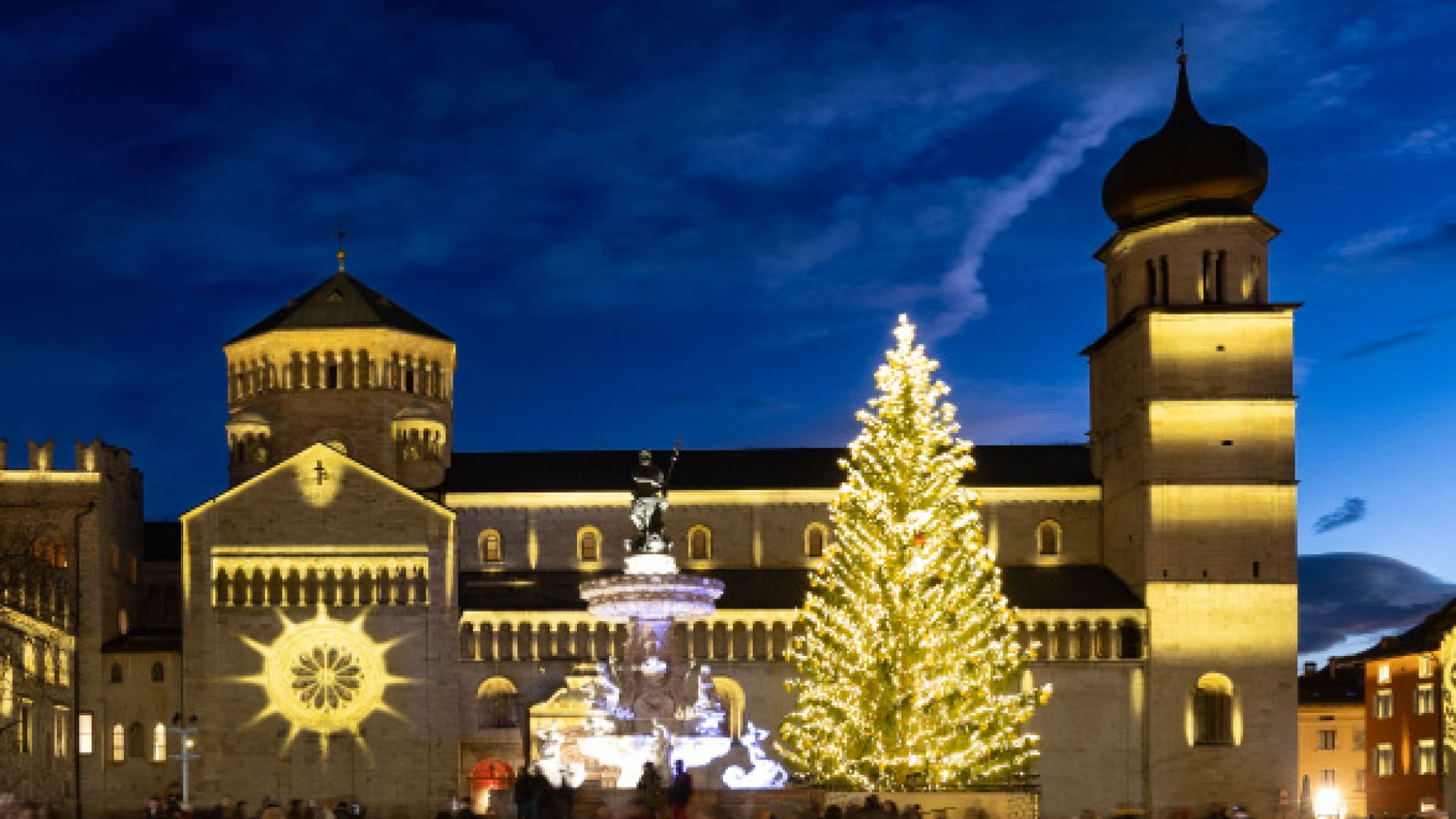 A Trento, la magia del Natale si manifesta attraverso un progetto di illuminazione scenografica temporanea che trasforma la piazza Duomo in un incantevole spazio di luce e storia. Inaugurato il 18 novembre 2023 e attivo fino all'8 gennaio 2024, questo progetto illumina a 360° gli storici edifici della piazza, accentuando la loro architettura con una scenografia di luce che offre una nuova interpretazione delle loro facciate.