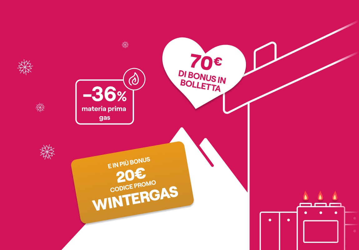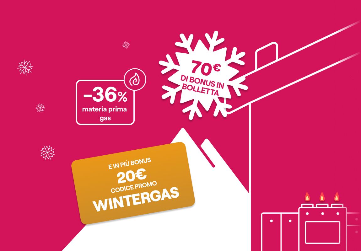 Bonus WINTERGAS: sottoscrivendo la presente offerta inserendo il codice promo WINTERGAS valido dal 12/02/2026 al 04/03/2026, verrà riconosciuto nelle prime 10 bollette mensili un bonus di 2€, a detrazione dell’importo totale fatturato in bolletta.