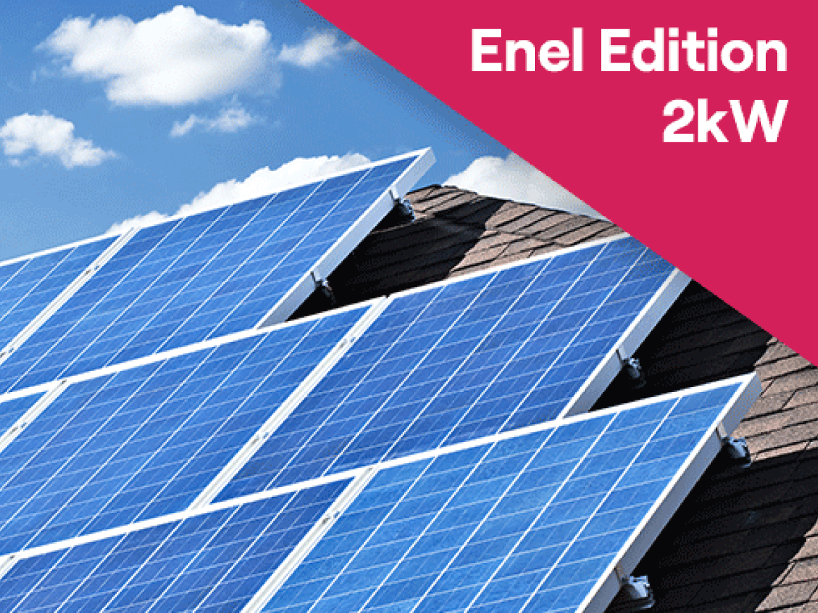 Soluzione completa, ideale per un consumo medio annuo di 3.000 kWh, con tutto incluso*: installazione, pratiche, smaltimento moduli e coperture assicurative All Risks ed Enel Sole Assicurato (che ogni anno ti rimborsa se nel tuo comune c’è stato meno sole rispetto agli anni precedenti).