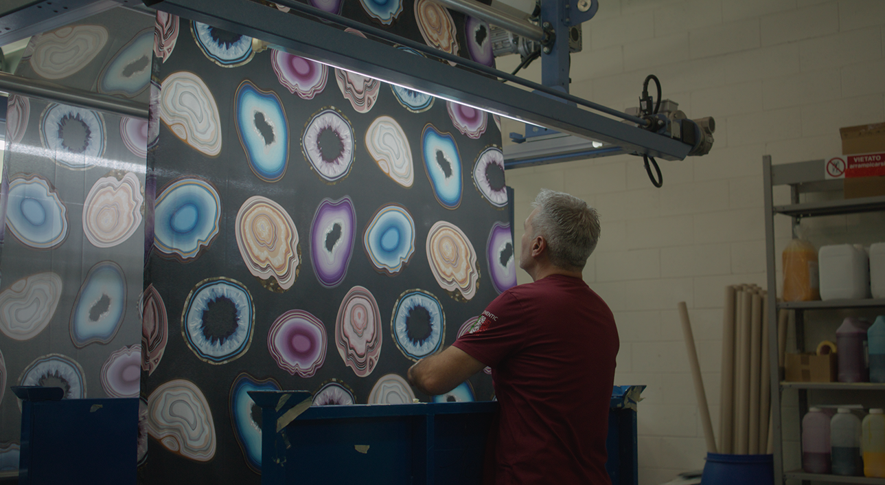 La creatività e l’energia sono la forza vitale che ogni giorno fanno girare i rulli delle sue produzioni e che permettono di alimentare le macchine da stampa digitali, dando il via a un’intricata trama fatta di colori, tessuti e innovazione in cui ogni filo rappresenta un passo verso un futuro più sostenibile.